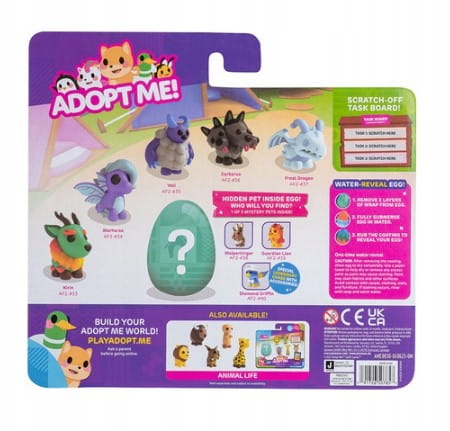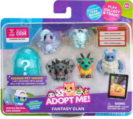 Zestaw Adopt Me Roblox Fantasy Clan to wyjątkowa kolekcja figurek inspirowanych światem gry Adopt Me! W opakowaniu znajduje się aż sześć uroczych stworzeń oraz tajemnicze jajko-niespodzianka, w którym ukryty jest dodatkowy zwierzak. Każda figurka została wykonana z dbałością o detale i przedstawia postacie znane z gry Roblox Adopt Me.