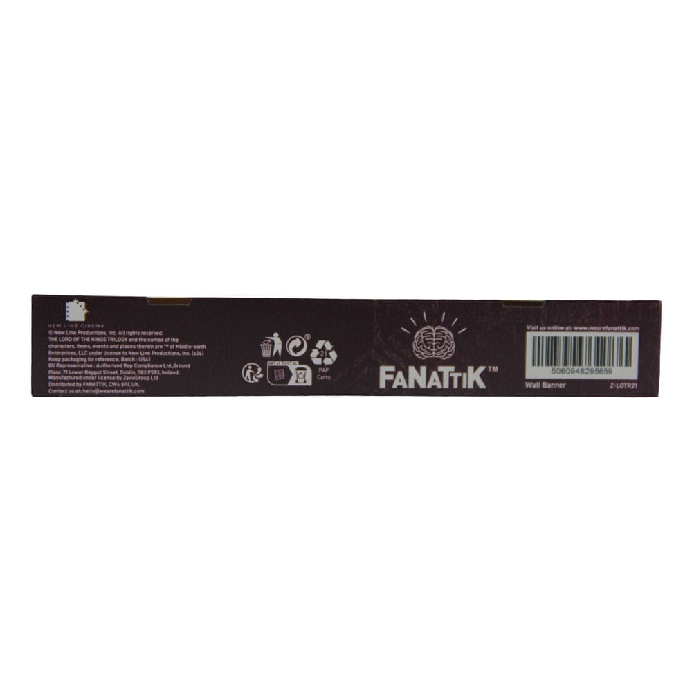 Banner ma wymiary 125 x 85 cm i został zaprojek towany z metalowymi oczkami w górnych rogach, co umożliwia łatwe zawieszenie. Idealne rozwiązanie do personalizacji swojego miejsca w stylu Władcy Pierścieni.