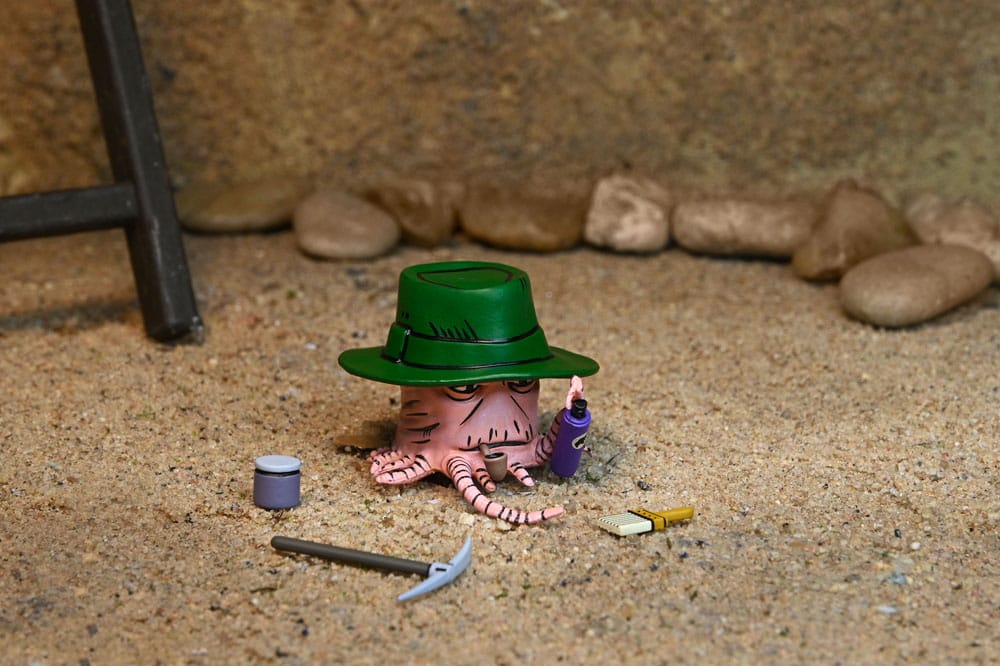 W zestawie znajdziesz interchangeable hands, które pozwalają na różne pozy i ekspresje, a także mini figurkę Profesora Obligado. Dzięki temu możesz samodzielnie kreować scenki i cieszyć się zabawą z ulubioną postacią. Figurka zapakowana jest w przyjazne kolekcjonerom opakowanie, wzbogacone o oryginalną grafikę autorstwa Kevina Eastmana.