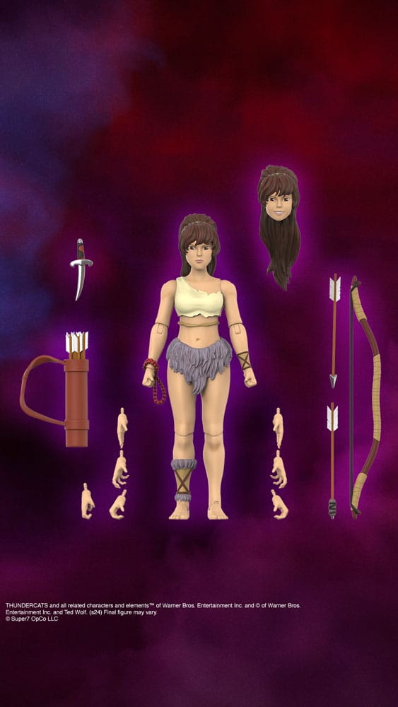 W zestawie znajduje się szereg akcesoriów, które pozwolą na różnorodne aranżacje. Wśród nich znajdziesz dwa wymienne głowy (neutralną i uśmiechniętą), dziewięć wymiennych rąk oraz zestaw broni, w tym łuk, strzały, kołczan oraz sztylet. Dzięki wysokiej artykulacji, figurka pozwala na wiele dynamicznych pozycji, co czyni ją idealnym dodatkiem do każdej kolekcji. Zapakowana w przyjazne kolekcjonerom opakowanie z oknem, figurka Nayda to doskonały wybór dla każdego miłośnika ThunderCats.