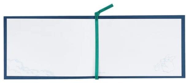 Wymiary kartki to 15 x 10 cm. Wewnątrz znajduje się wysokiej jakości biały papier oraz wstążka, co umożliwia eleganckie zamknięcie i personalizację każdej wiadomości.