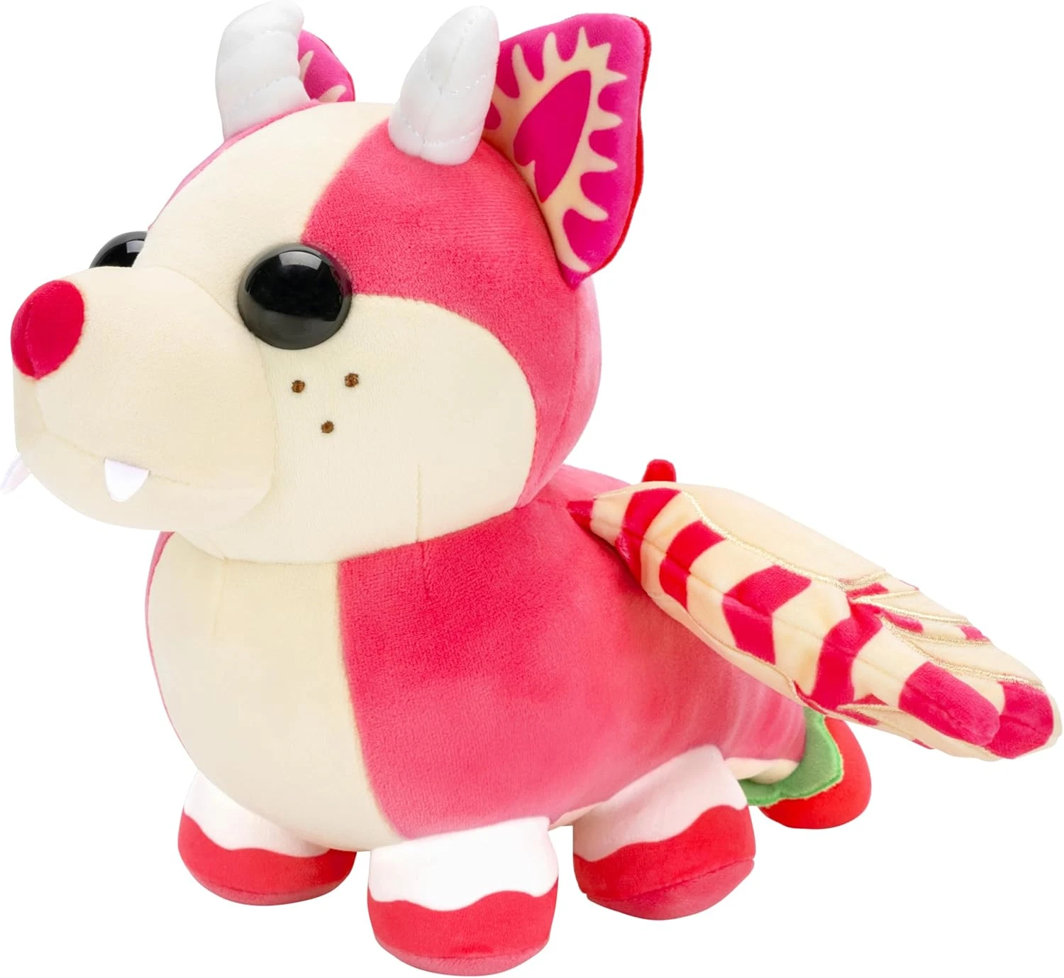 Pluszak Strawberry Shortcake Bat Dragon to oficjalnie licencjonowana maskotka z serii Adopt Me! Collector Series 5 w rzadkości Legendary! Zabawka o wymiarach 27 x 22 cm wiernie oddaje wygląd tego wyjątkowego stworzenia w różowo-kremowych barwach z charakterystycznymi pasiastymi skrzydłami.