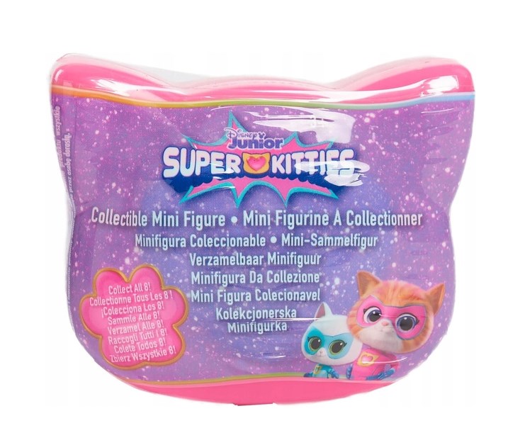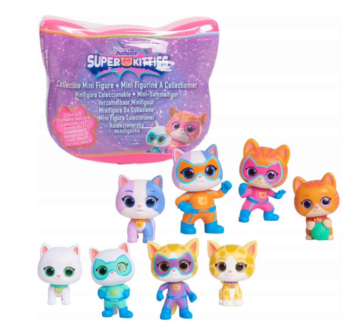 Disney Junior SuperKitties Mini Figurka Niespodzianka to propozycja dla małych kolekcjonerów zafascynowanych światem serialu Disney Junior SuperKitties. Każde opakowanie skrywa jedną z 8 unikalnych postaci – którą tym razem? To część zabawy.