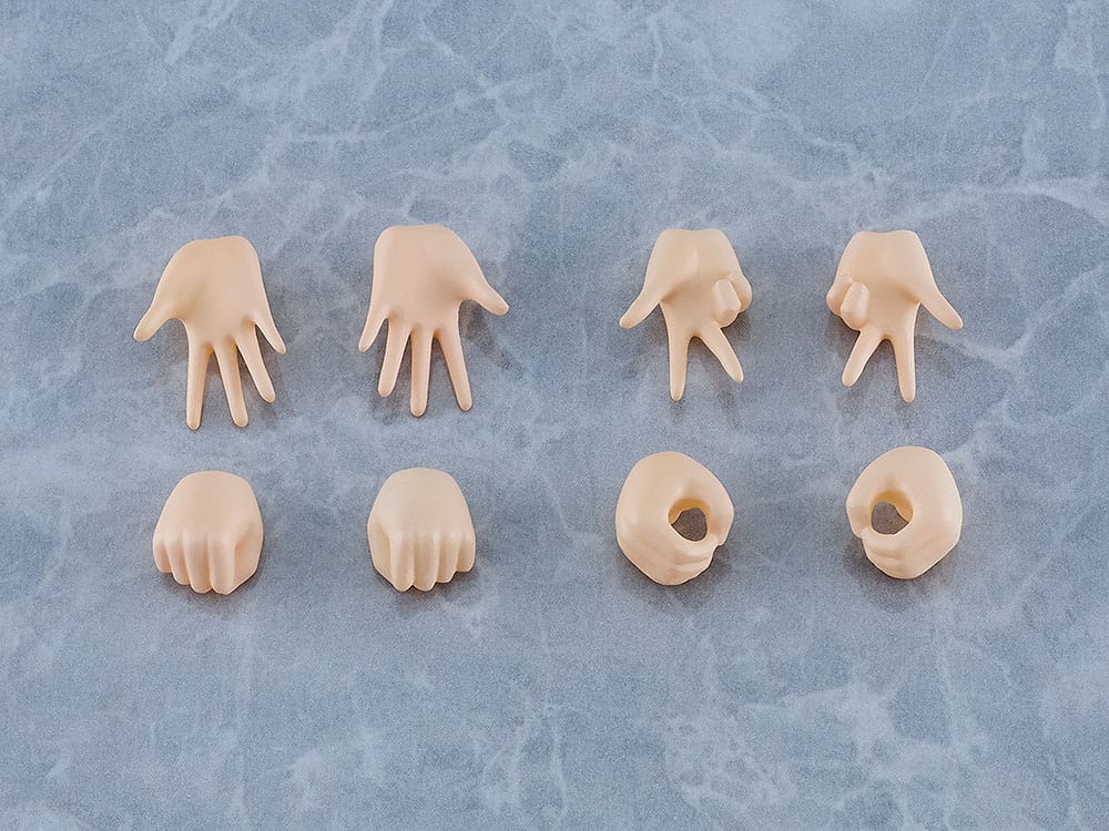 W zestawie znajduje się pre-pomalowana twarz z uśmiechem oraz dodatkowe dwie twarze (smiling i neutralna), które można dostosować za pomocą naklejek na oczy. W komplecie są także cztery rodzaje rąk: zamknięte, otwarte, w geście pokoju oraz chwytające. Otwory w rękach chwytających mają średnicę 3 mm, co pozwala na trzymanie różnych akcesoriów kompatybilnych z tym rozmiarem.