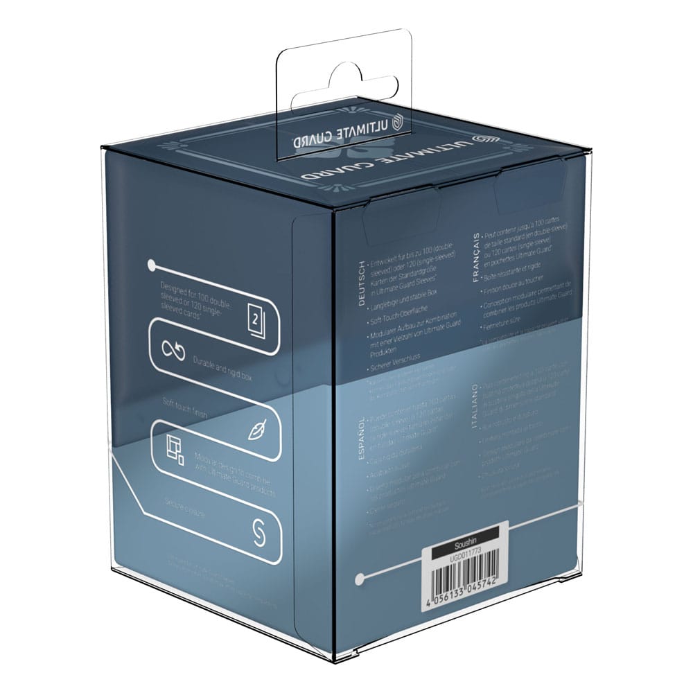 Pudełko jest wystarczająco pojemne, aby pomieścić 100 podwójnie osłoniętych kart w koszulkach Ultimate Guard, co czyni je doskonałym wyborem dla graczy takich gier jak Magic: The Gathering, Pokémon czy Yu-Gi-Oh!. Dodatkowo, modułowy design pozwala na łatwe łączenie z innymi produktami Ultimate Guard, co idealnie wpisuje się w potrzeby każdego kolekcjonera.