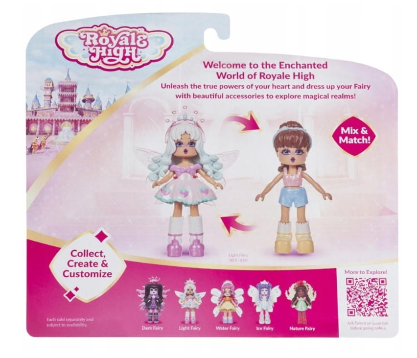 Rozświetl magię Royale High! Oficjalna figurka Royale High Light Fairy to olśniewający zestaw kolekcjonerski, który wiernie oddaje blask i urok promienistej postaci z uwielbianej gry Roblox. Ta pełna światła laleczka zaprasza do świata kreatywnej zabawy i jaśniejących stylizacji.